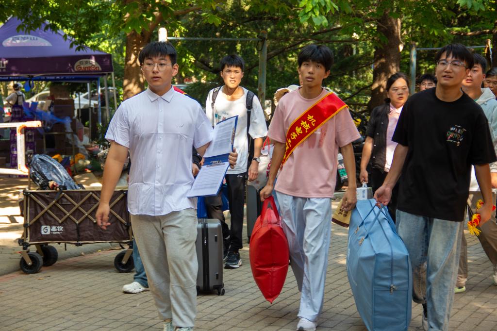 迎新日,迎新工作成員早早守候在報(bào)到點(diǎn),有的舉著“機(jī)電歡迎你”的手牌引導(dǎo)新生,有的蹲身為新生搬運(yùn)沉重的行李箱,有的捧著“新生答疑手冊”耐心解答疑問……從晨光熹微到暮色四合,“紅綬帶”與“藍(lán)帳篷”交織成校園里最溫暖的風(fēng)景線,用默契協(xié)作與貼心服務(wù),為661名“小妖”鋪就了一條溫暖的“入學(xué)路”。