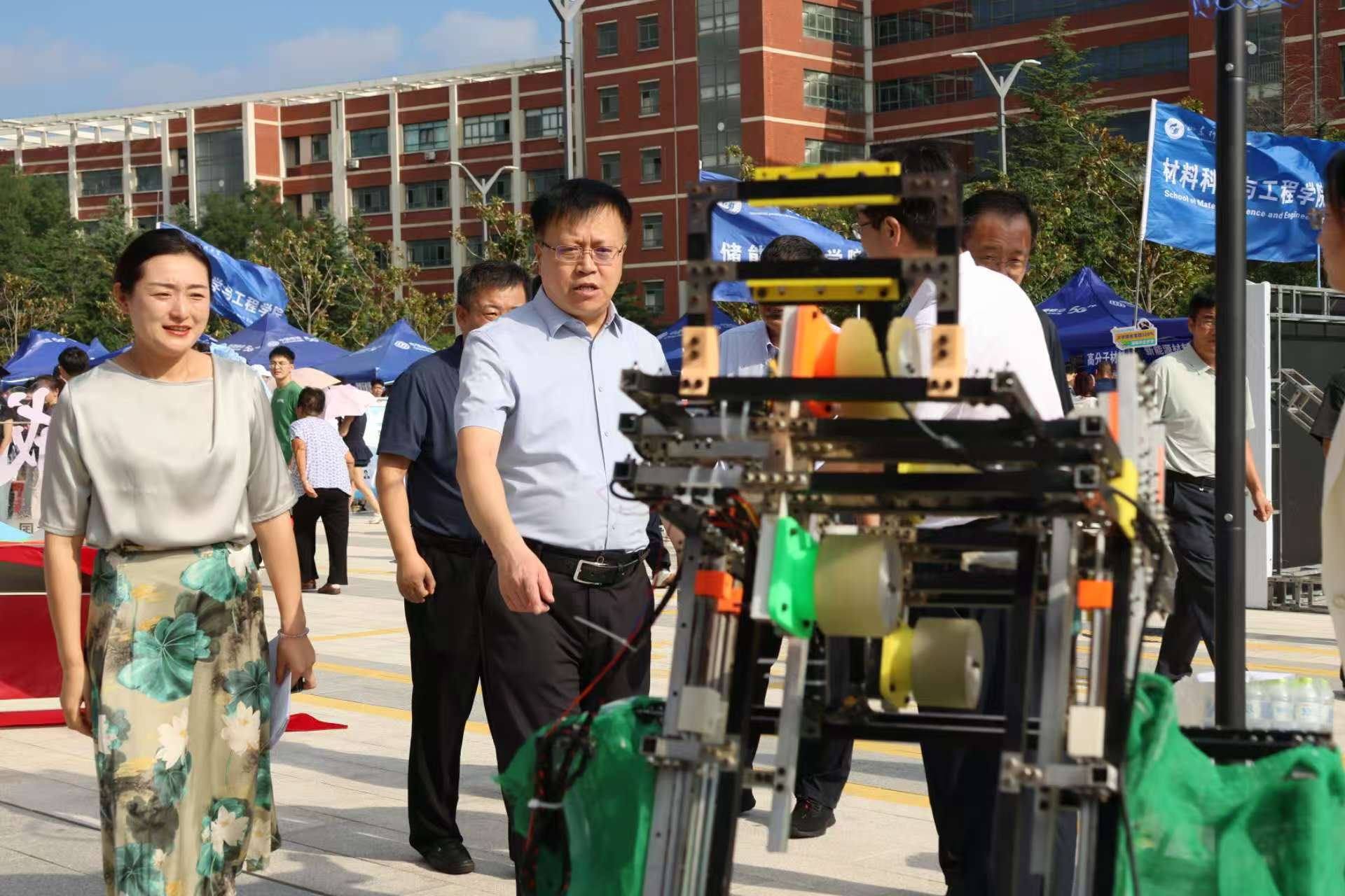 在迎新期間,校黨委書記王君松、校長曾慶田以及相關(guān)部門領(lǐng)導(dǎo)來到學(xué)院迎新點(diǎn),學(xué)院領(lǐng)導(dǎo)匯報(bào)迎新工作進(jìn)展情況,并就學(xué)院“‘五’力賦能儀式”“科技展示處”等特色迎新項(xiàng)目進(jìn)行介紹。學(xué)校領(lǐng)導(dǎo)高度肯定了機(jī)電學(xué)院近年來在學(xué)生科創(chuàng)方面取得的成就,并對學(xué)院新生寄予了更高的期待。