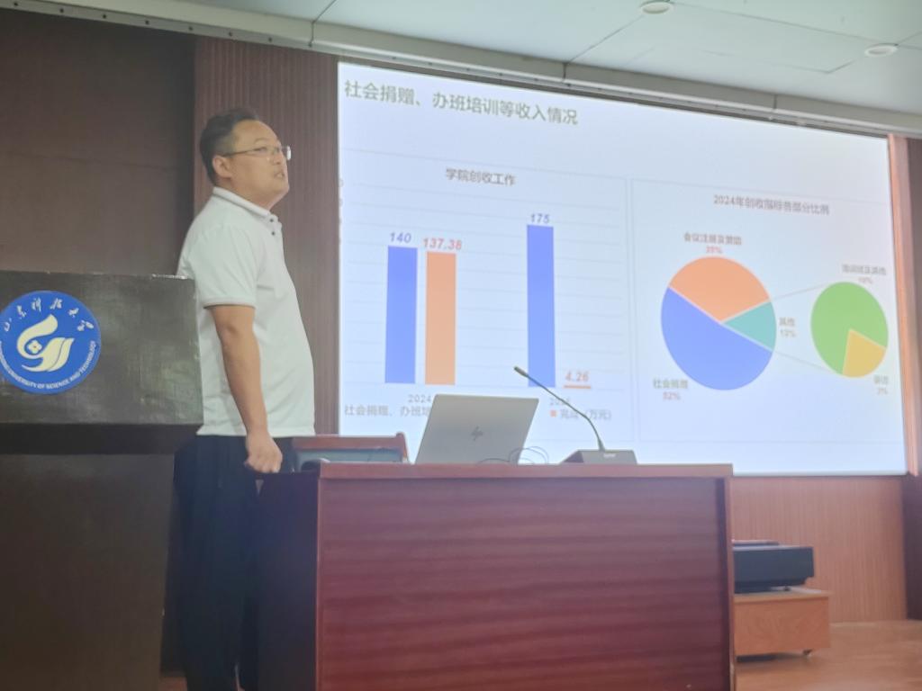 學院黨委副書記兼副院長劉梅月、副院長孫靜、副院長張鑫及院長助理李賀、呂玉廷、蘇金鵬、陳寧,分別就分管工作做了上半年工作總結(jié),并對標學校的任務指標匯報了下半年工作的計劃。