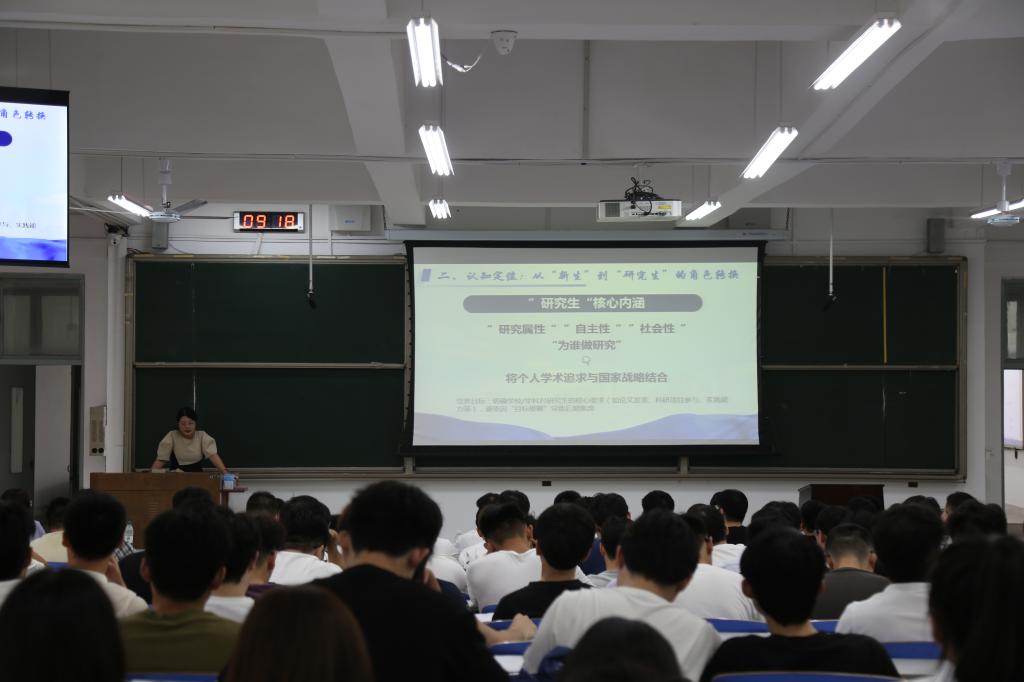 “專(zhuān)業(yè)教育”板塊由院長(zhǎng)助理呂玉廷主講,他系統(tǒng)解讀了學(xué)校研究生培養(yǎng)體系的核心內(nèi)容。從研究生培養(yǎng)目標(biāo)的設(shè)定、培養(yǎng)環(huán)節(jié)的推進(jìn)、培養(yǎng)過(guò)程的管理,到培養(yǎng)管理模式的創(chuàng)新,再到提升培養(yǎng)質(zhì)量的系列舉措。呂玉廷層層遞進(jìn),幫助新生構(gòu)建起研究生階段學(xué)習(xí)發(fā)展的完整框架,有效增強(qiáng)了同學(xué)們對(duì)學(xué)校及學(xué)院的認(rèn)同感與歸屬感,進(jìn)一步拉近了新生與校園的心理距離。此外,他還對(duì)學(xué)院雄厚的師資力量、多元的研究方向及廣闊的畢業(yè)工作前景進(jìn)行深入介紹,助力新生全面且深入地認(rèn)識(shí)專(zhuān)業(yè)領(lǐng)域,為后續(xù)科研學(xué)習(xí)找準(zhǔn)方向。