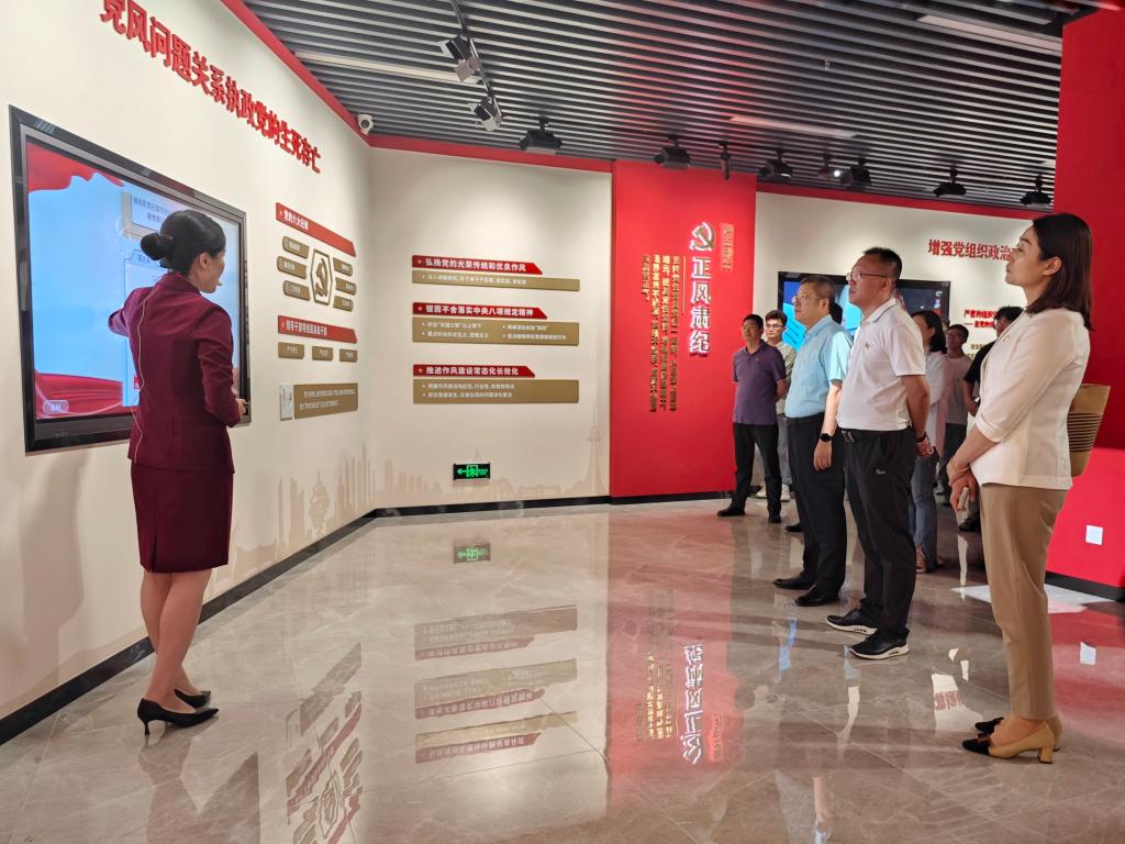 教育基地展廳分為“政治統(tǒng)領(lǐng)、理論武裝、堪當(dāng)重任、組織建設(shè)、正風(fēng)肅紀(jì)、反腐攻堅(jiān)、自我革命、黨建引領(lǐng)”八大主題,伴隨著講解員的講解,參觀人員借助交互視頻展示、VR互動等高科技多媒體技術(shù),身臨其境地學(xué)習(xí)中國共產(chǎn)黨百年奮斗歷程和重大成就。在“正風(fēng)肅紀(jì)”主題部分,參觀人員共同學(xué)習(xí)了《中國共產(chǎn)黨紀(jì)律處分條例》的修訂過程、意義和突出特點(diǎn),并現(xiàn)場進(jìn)行了《條例》知識測試。在“反腐攻堅(jiān)”主題部分,共同觀看了警示教育片,增強(qiáng)學(xué)紀(jì)、知紀(jì)、明紀(jì)、守紀(jì)意識,以案為鑒、以案明紀(jì),切實(shí)筑牢拒腐防變的思想防線。