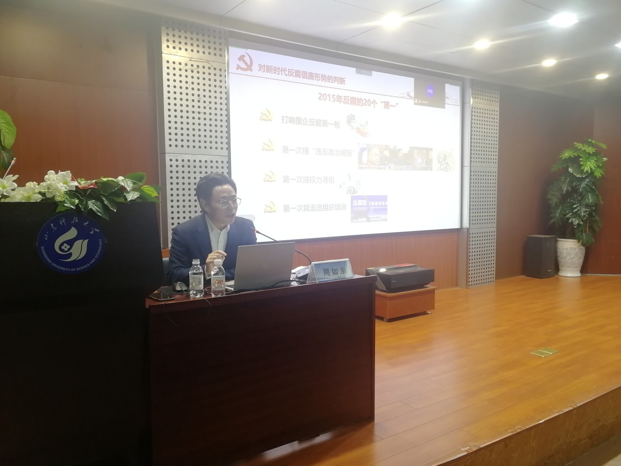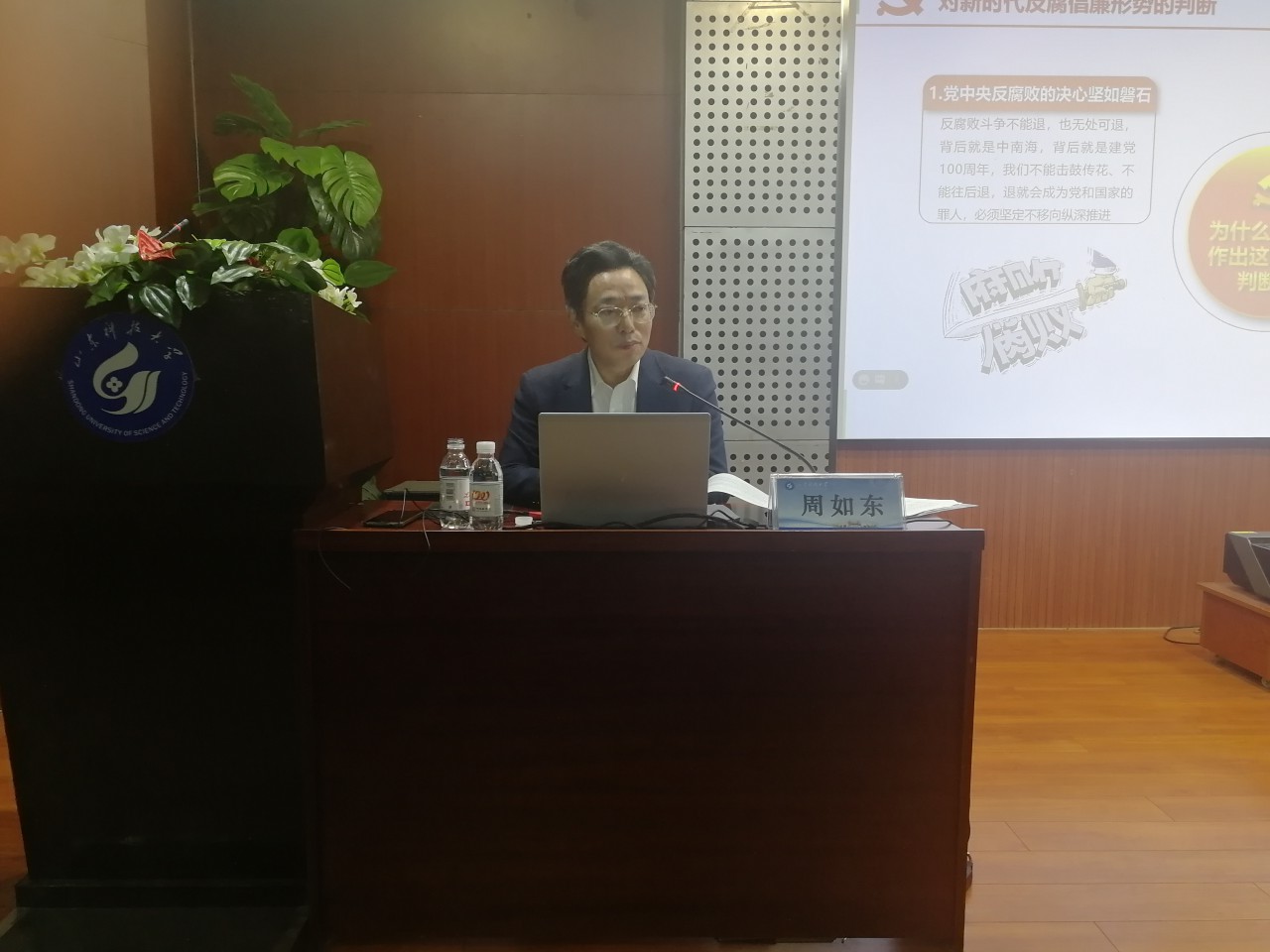 講座中,周如東以時(shí)間為軸線,歷數(shù)自黨的十八大以來,以習(xí)近平同志為核心的黨中央冷靜分析反腐敗形勢,作出不同時(shí)期反腐敗斗爭的形勢判斷和決策要求,他通過講述薄熙來、周永康、徐才厚等“大老虎”落馬的案例,向?qū)W員們詳細(xì)介紹了黨的十八大以來黨在反腐工作中取得的重要成果,指出反腐敗形勢依然嚴(yán)峻,案例深刻,發(fā)人深思。他指出,學(xué)員們在今后的工作、學(xué)習(xí)中要牢記共產(chǎn)黨人的初心和使命,潔身自好,不走歪門邪道,防止“破窗效應(yīng)”的發(fā)生。