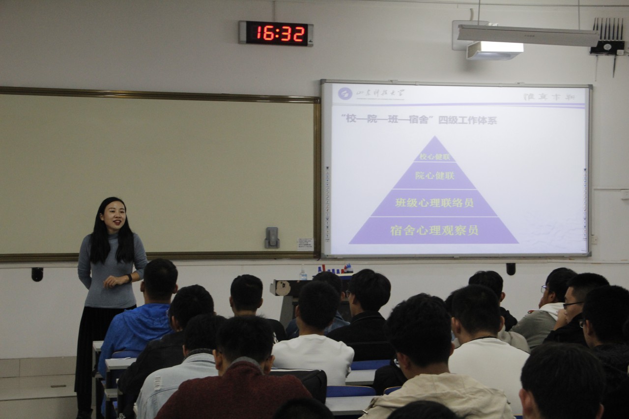 點(diǎn)擊:為提高心理學(xué)生干部的專業(yè)素質(zhì)與能力,進(jìn)一步做好學(xué)院心理健康建設(shè),10月26日下午,機(jī)電學(xué)院在J14-205舉辦學(xué)生干部培訓(xùn)班第三期講座。學(xué)生工作部大學(xué)生心理健康主任李淑娜應(yīng)邀擔(dān)任主講人,機(jī)電學(xué)院輔導(dǎo)員祝月盈老師主持,學(xué)院各年級(jí)團(tuán)支書、心理聯(lián)絡(luò)員、宿舍觀察員和院心理健康聯(lián)合會(huì)全體成員參加培訓(xùn)。