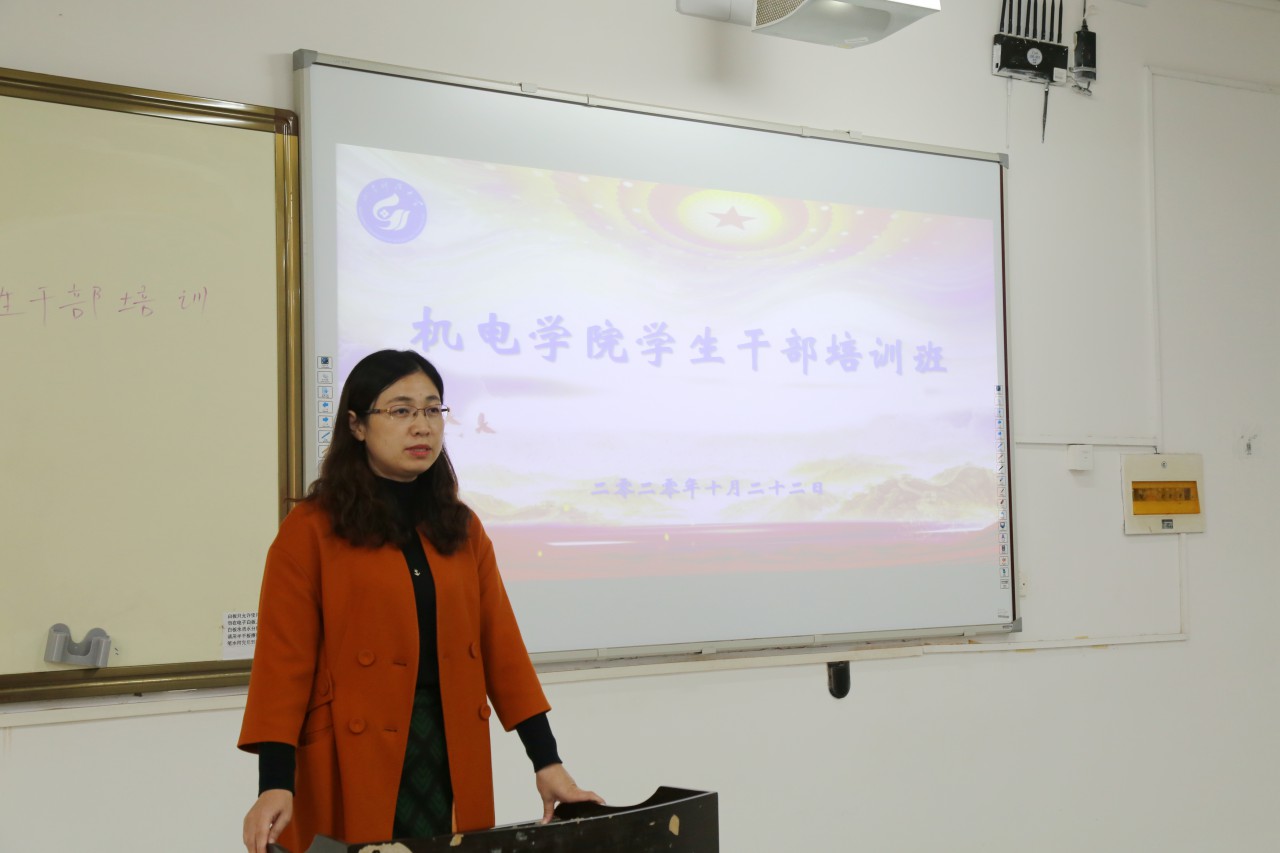 點(diǎn)擊:為進(jìn)一步加強(qiáng)學(xué)生干部隊(duì)伍建設(shè),提高學(xué)生干部素質(zhì)和工作能力,10月22日下午,機(jī)電學(xué)院在J14-205教室舉辦2020年學(xué)生干部培訓(xùn)班開班儀式暨第一期培訓(xùn)講座。科大報(bào)副主編、編輯部主任信永華老師應(yīng)邀擔(dān)任主講。機(jī)電學(xué)院學(xué)工辦主任(團(tuán)委書記)樊玉華、輔導(dǎo)員祝月盈老師出席培訓(xùn)班,各年級(jí)團(tuán)支書、宣傳委員及院新聞媒體中心全體成員參加了此次培訓(xùn)。