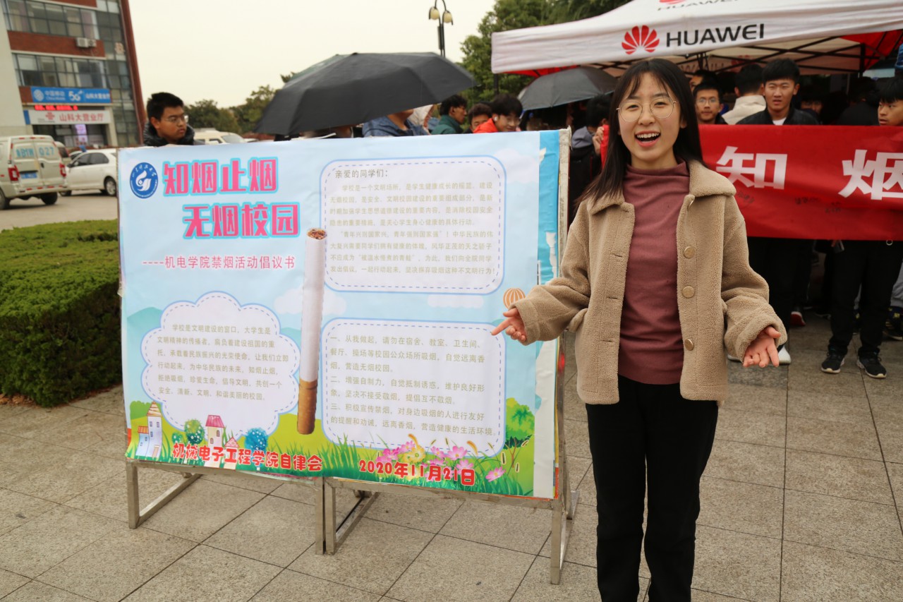 點(diǎn)擊:為提倡健康校園生活,增強(qiáng)大學(xué)生禁煙意識(shí),11月21日,機(jī)電學(xué)院在鐘樓廣場(chǎng)舉辦“知煙止煙,無煙校園”禁煙知識(shí)宣傳活動(dòng)。