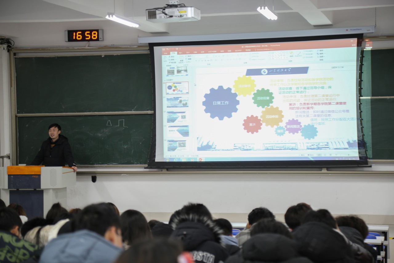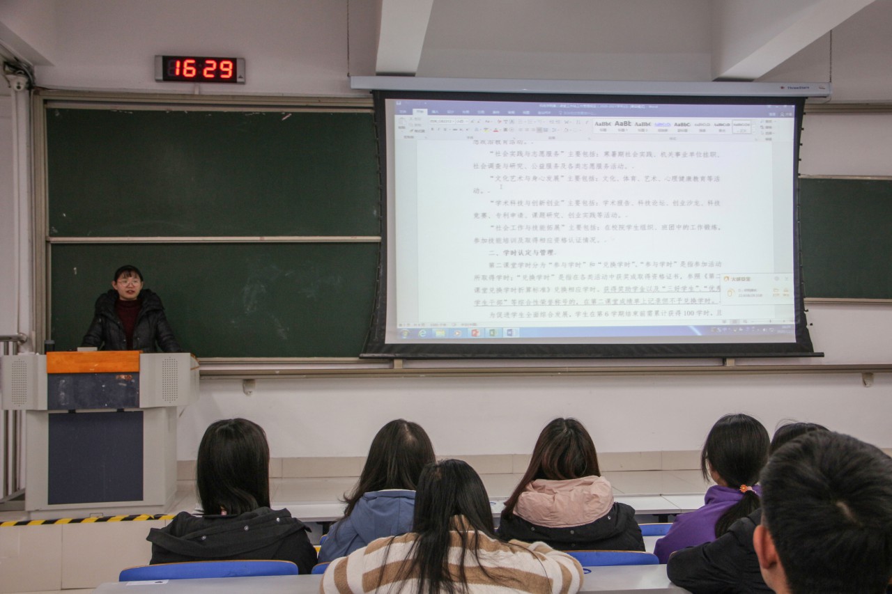 點擊:12月17日下午,機電學(xué)院在J14-421、423舉辦青年馬克思主義者培訓(xùn)班第一講,機電學(xué)院輔導(dǎo)員祝月盈、宋闊擔(dān)任主講人,講解《第二課堂成績單實務(wù)》,2020級全體學(xué)生參加培訓(xùn)。 培訓(xùn)會上,祝月盈、宋闊圍繞第二課堂活動的意義和作用,第二課堂成績單的課程設(shè)置、學(xué)時認(rèn)定與管理、如何發(fā)起、學(xué)院第二課堂工作站相關(guān)工作內(nèi)容,PU口袋校園的使用方法向同學(xué)們介紹第二課堂相關(guān)內(nèi)容,重點講解了各類課程的學(xué)時數(shù)要求、第二學(xué)期兌換學(xué)時應(yīng)注意的方面。老師們表示,第二課堂是發(fā)展特長、塑造個性的重要方式,要注重在第二課堂活動中鍛煉能力、提高素質(zhì),充分發(fā)揮第一課堂和第二課堂的補充配合作用。 本次培訓(xùn)使2020級學(xué)生更加明確了第二課堂的意義與作用,加深了同學(xué)們對“PU口袋校園”的了解,進一步推動學(xué)院第二課堂制度的建設(shè)與工作落實。(通訊員:祝月盈 攝影:韓開睿、吳昊天)