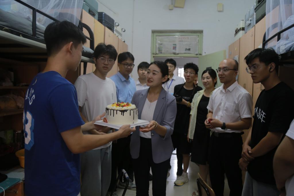 8月31日下午,學(xué)院領(lǐng)導(dǎo)及新生輔導(dǎo)員前往學(xué)生宿舍對(duì)新生進(jìn)行看望和慰問。走訪中,學(xué)院領(lǐng)導(dǎo)與同學(xué)們進(jìn)行了親切的交流,聽取同學(xué)們對(duì)宿舍、空調(diào)、洗浴等生活條件的意見建議,了解大家思想、心理、家庭等方面情況,并就大家所關(guān)心的問題給予悉心指導(dǎo)。今天恰逢兩位小萌新的生日,學(xué)院提前準(zhǔn)備好了生日小驚喜,為我們“新”朋友送上生日蛋糕和充滿祝福的生日歌,希望他們能及時(shí)適應(yīng)環(huán)境,投入新的學(xué)習(xí)和生活。