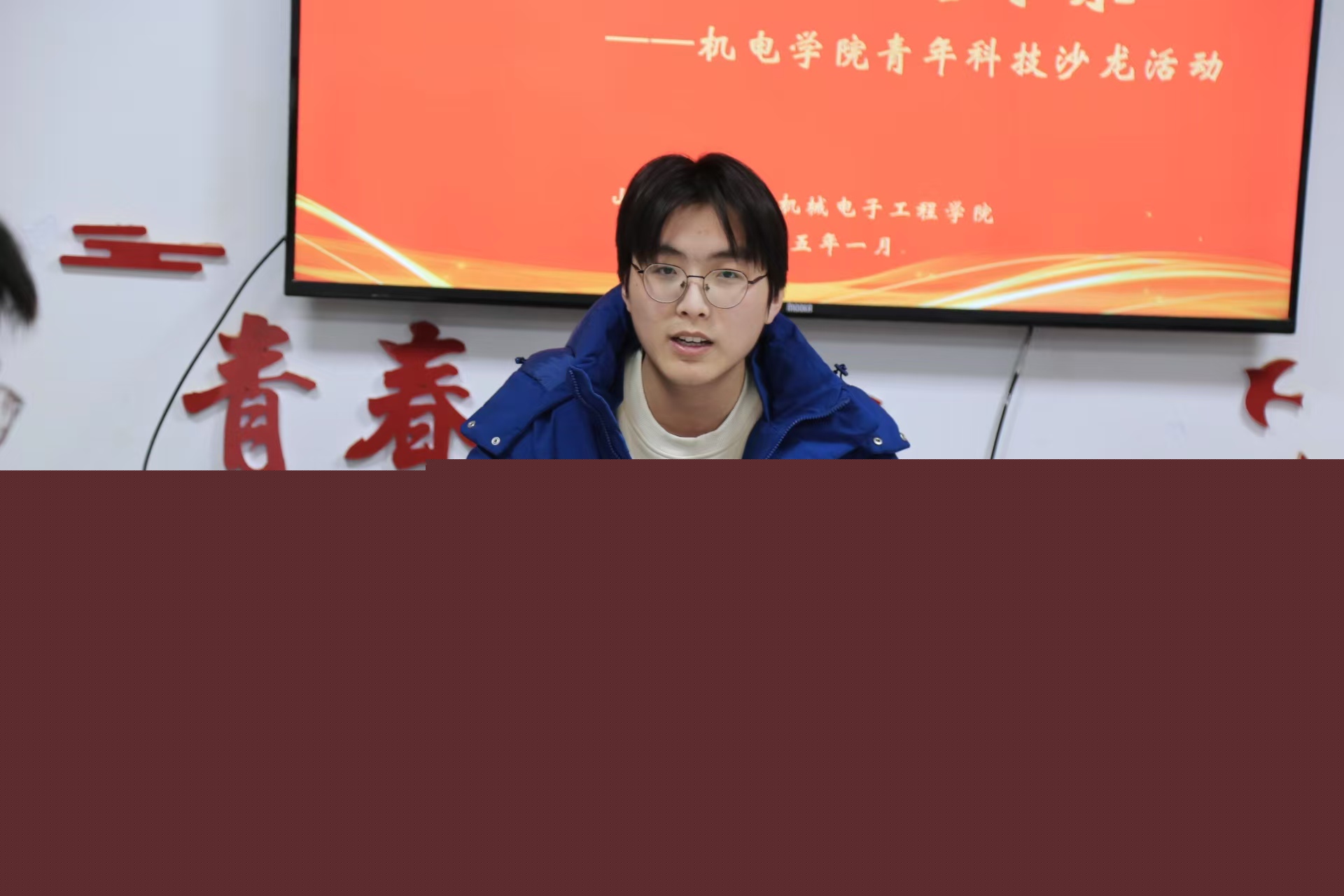 點擊:12月30日,機電學(xué)院于機YU驛站學(xué)生一站式社區(qū)舉辦“領(lǐng)航青春,星啟未來”青年沙龍活動,此次活動特邀機電21-3班的楊子豪、機電22-1班的石勝仁、機設(shè)22-5班的張凱媛、機電23-6班的趙赟赫,會議由輔導(dǎo)員苗成旭主持。
