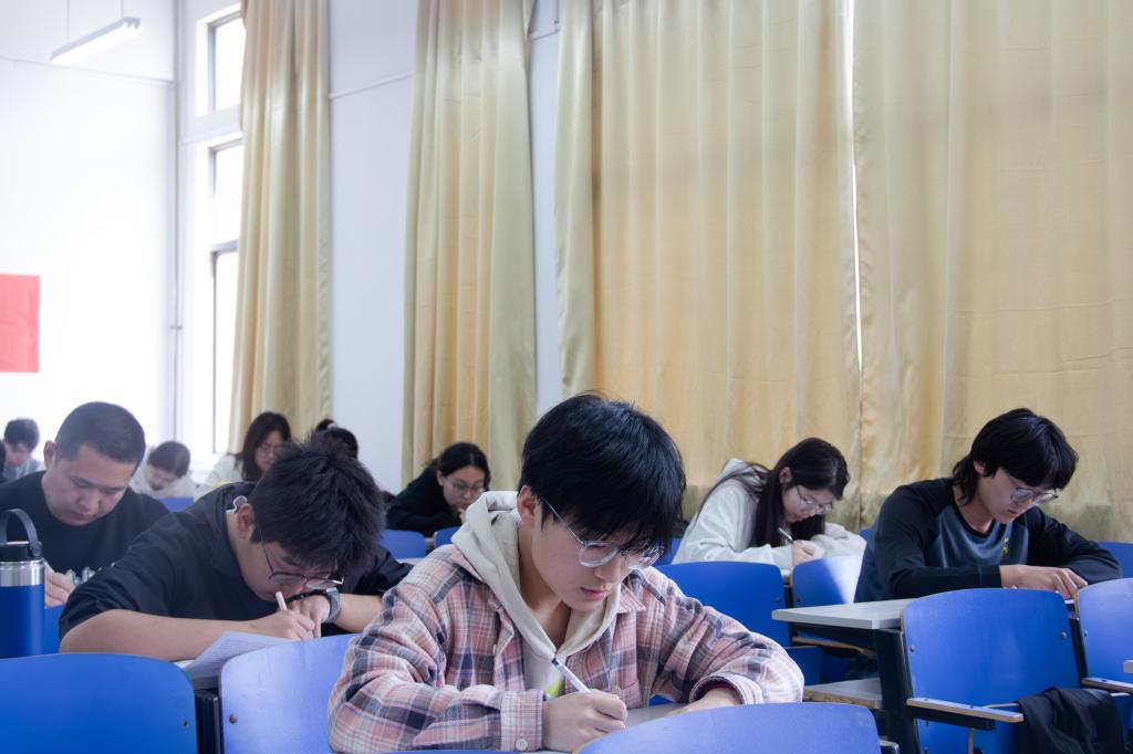 考場(chǎng)內(nèi)彌漫著緊張而專(zhuān)注的氣息。提前到場(chǎng)的團(tuán)支部書(shū)記,低聲交流著自學(xué)心得與經(jīng)驗(yàn),談話中透露出對(duì)知識(shí)的渴望與躍躍欲試的期待。隨著試卷下發(fā),大家迅速進(jìn)入狀態(tài),全神貫注地閱讀試題,落筆果斷有力,將平日的積累化作一行行工整的答卷,在這場(chǎng)知識(shí)與能力的較量中盡情展現(xiàn)自我。本次測(cè)試題型豐富多樣,涵蓋填空題、單選題、多選題、判斷題、簡(jiǎn)答題。主要考察內(nèi)容包括習(xí)近平總書(shū)記關(guān)于青年工作的重要思想、黨的二十大和二十屆二中、三中全會(huì)精神、黨史團(tuán)史、團(tuán)內(nèi)規(guī)章制度和學(xué)校共青團(tuán)相關(guān)政策和規(guī)定等。