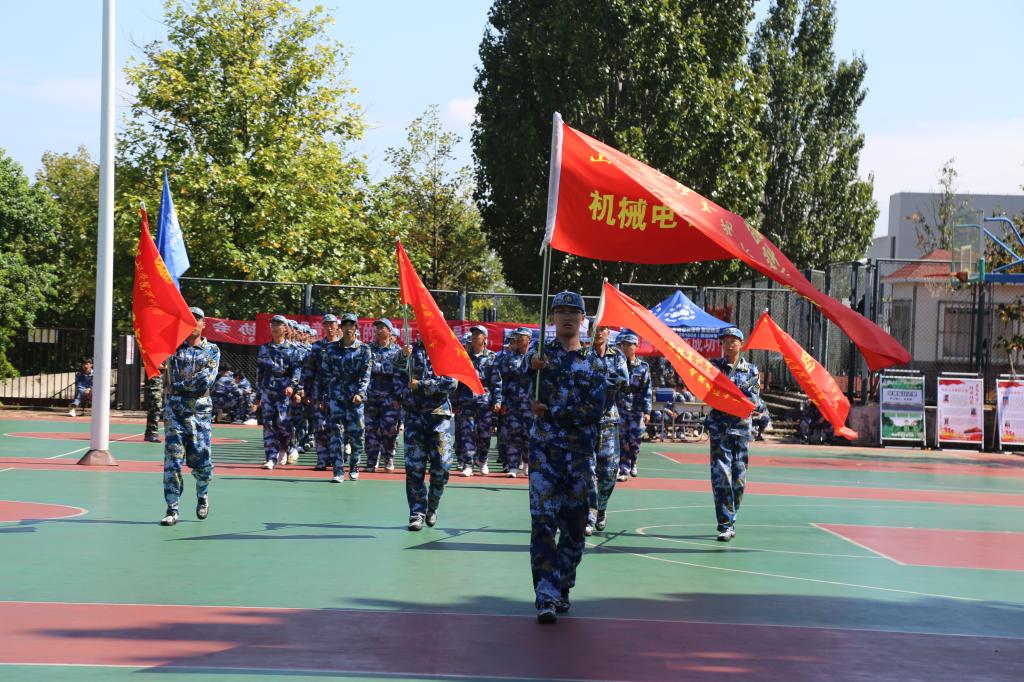分列式訓(xùn)練以“齊步變正步”為核心,注重動作規(guī)范與團(tuán)隊協(xié)作。機(jī)電學(xué)院的學(xué)子們在教官指導(dǎo)下反復(fù)打磨擺臂高度、步伐間距,烈日下汗水浸透衣衫,卻無人松懈。每一次踢腿定型、擺臂發(fā)力,都凝聚著對“整齊劃一”的極致追求。學(xué)院方隊則通過“分解練習(xí)+整體合練”模式,從單列行進(jìn)到多列協(xié)同,逐步提升排面整齊度。教官強(qiáng)調(diào):“正步的‘秒米不差’不僅考驗個人素質(zhì),更需集體默契。”