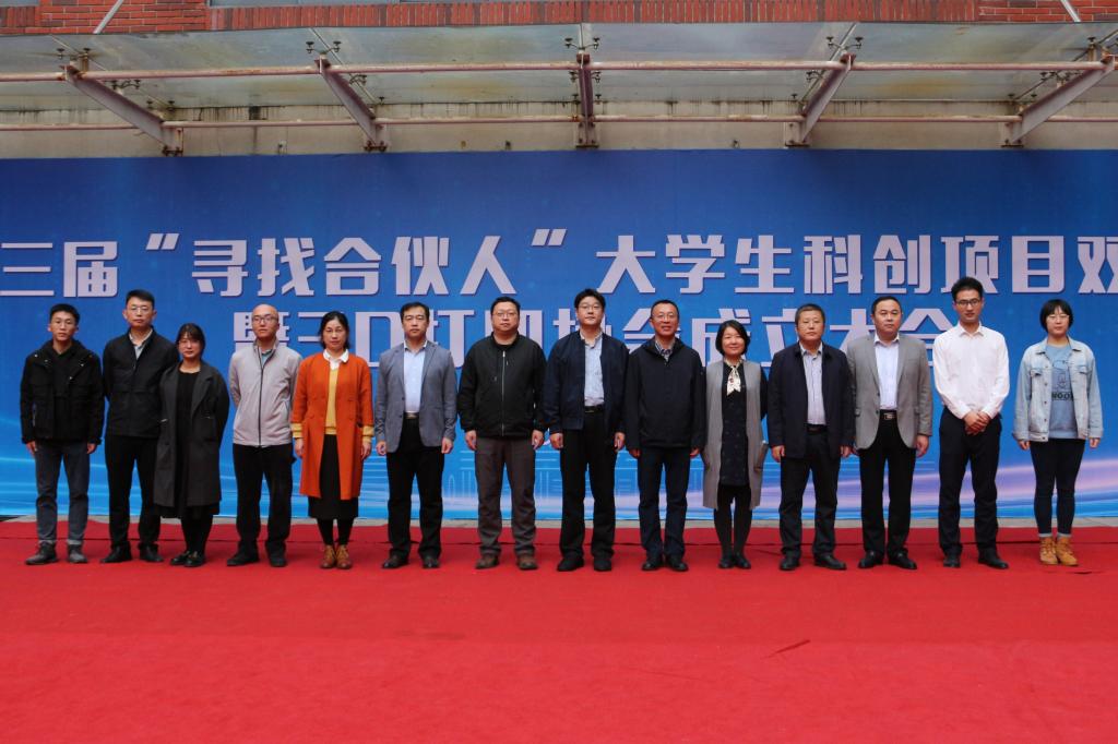啟動(dòng)儀式中,楊彬宣讀了《第三屆“尋找合伙人”大學(xué)生科創(chuàng)項(xiàng)目雙選會(huì)通知》,學(xué)生代表崔潔旭上臺(tái)發(fā)言,靳凱宣讀了《山東科技大學(xué)3D打印協(xié)會(huì)成立公告》,劉松為3D打印協(xié)會(huì)指導(dǎo)教師頒發(fā)聘書,尹立明、陳猛為3D打印協(xié)會(huì)揭牌。