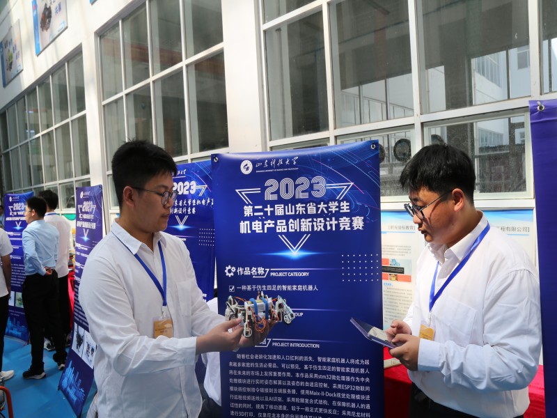 本屆競賽分為預(yù)賽和決賽兩個階段,作品內(nèi)容涉及機(jī)械、電子、車輛、化工、紡織、輕工、控制等行業(yè),吸引了包括山東科技大學(xué)、山東大學(xué)、中國石油大學(xué)(華東)等85所高校參與,經(jīng)過作品展覽、演示、答辯等環(huán)節(jié),最終評選出一等獎152項、二等獎236項、三等獎392項。其中,我院共計52支隊伍報名,《煤礦用井下瓦斯抽排處理設(shè)備》《基于輪腿式的家庭智能仿生機(jī)器人》《管道外壁巡檢機(jī)器人》《海底管道泄漏監(jiān)測智能化仿鱘魚機(jī)器人》《城市衛(wèi)士—基于神經(jīng)網(wǎng)絡(luò)學(xué)習(xí)的智能化垃圾桶》《履帶式搜救機(jī)器人設(shè)計及復(fù)雜路況通過性能優(yōu)化》六項作品榮獲一等獎。
