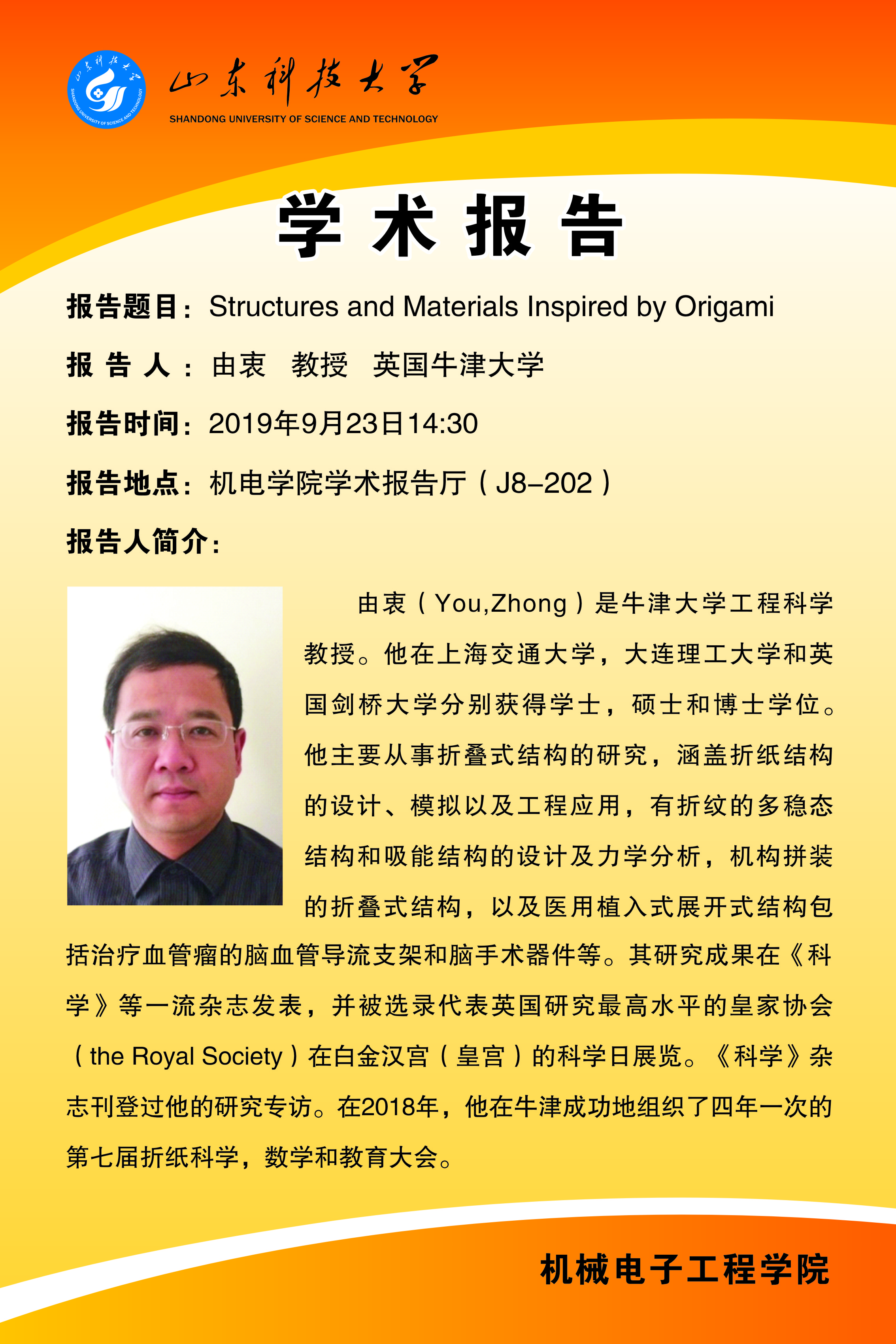 學術(shù)報告:Structures and Materials Inspirde by Origami