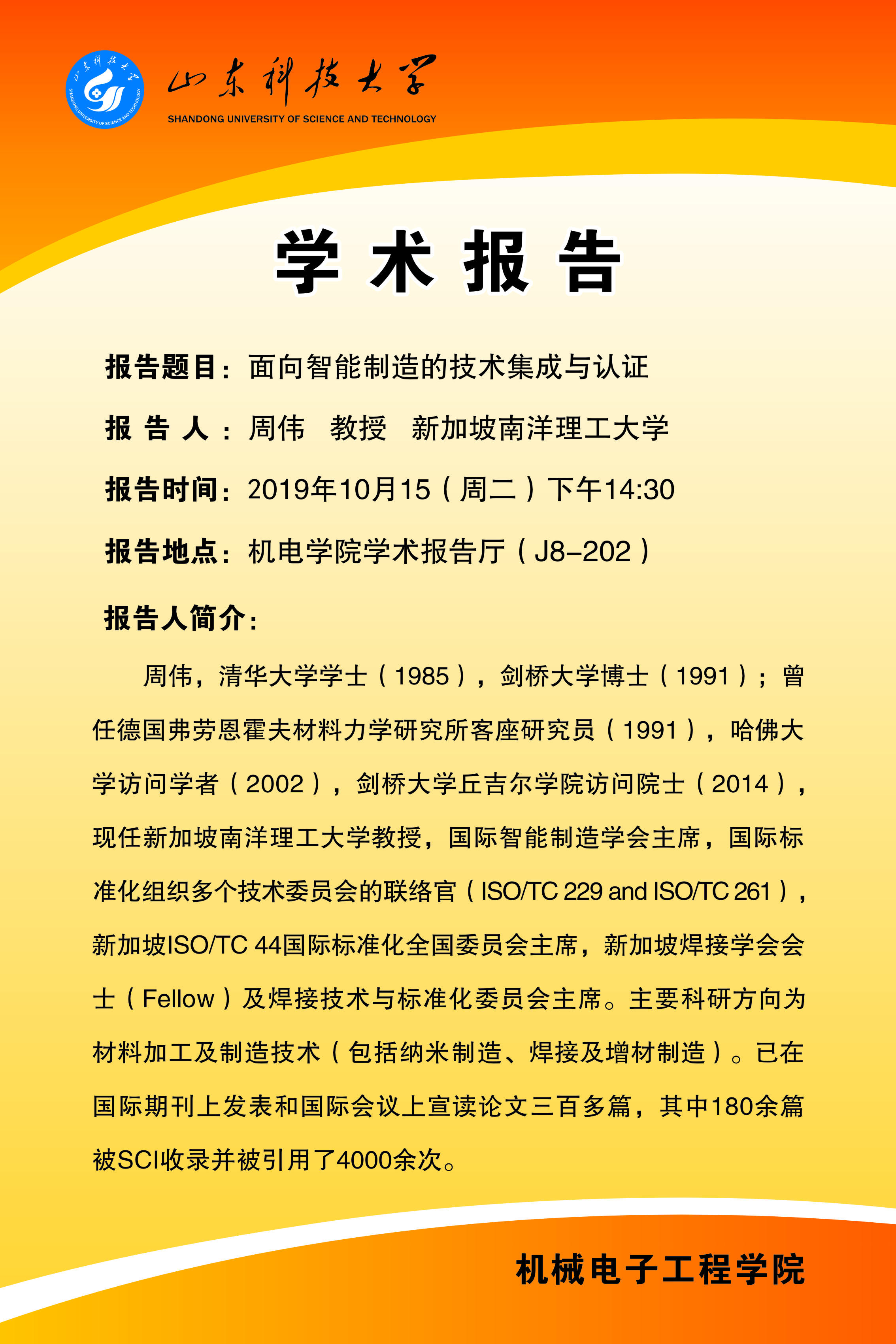 學(xué)術(shù)報告:面向智能制造的技術(shù)集成與認(rèn)證