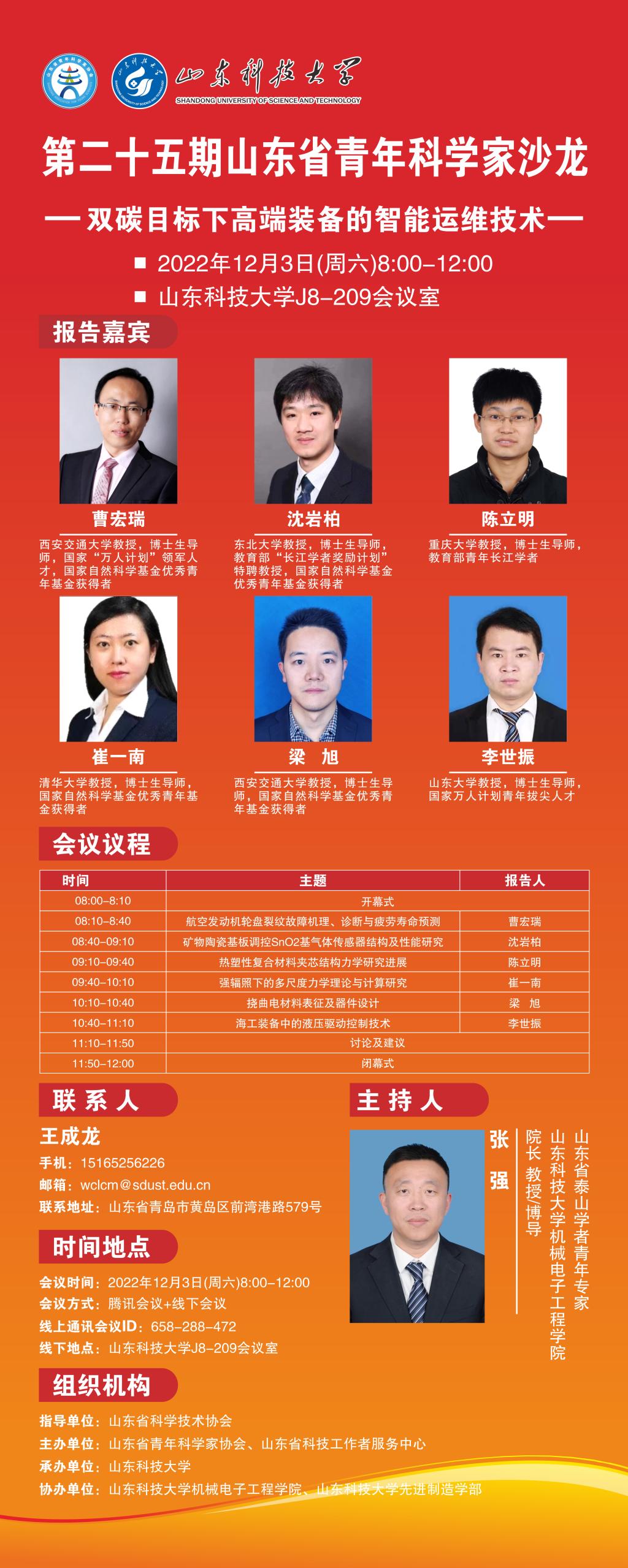 第二十五期山東省青年科學(xué)家沙龍-雙碳目標(biāo)下高端裝備的智能運維技術(shù)