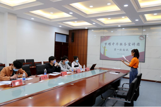 隨后,60名同學(xué)進行第一輪面試,他們依次進行自我介紹,表達自己想要在社會實踐中服務(wù)奉獻的決心,同時,面試官們也與同學(xué)們就社會實踐等問題進行交流探討。