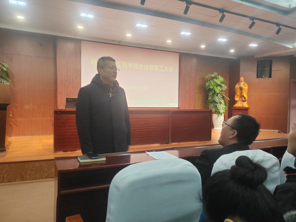 院長張強從黨建、教學、科研、學科建設、人才工作、學團工作、對外合作等方面,對學院2025年的工作作了總結,并對學院2026年的重點工作進行了部署,強調要一要做好機械工程專業(yè)博士點申報、新一輪學科評估等工作;二要強化學院科研方向凝練和內涵建設,各科研方向做好“傳、幫、帶”工作;三是加強專業(yè)建設,認真推行專業(yè)認證,做好低空經(jīng)濟現(xiàn)代產(chǎn)業(yè)學院的建設工作;四是繼續(xù)強化國際化工作。